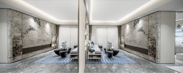 考虑到业主归家的仪式感,新世界·天馥特别打造星级酒店式电梯厅、星级电梯轿厢和地下停车场星级电梯厅三大星级空间,配合不同的入户动线,让业主感受到归家的美好。