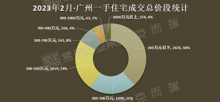 值得一提的是,在1000万元以上总价段,2月广州总计成交274套,占比4%。