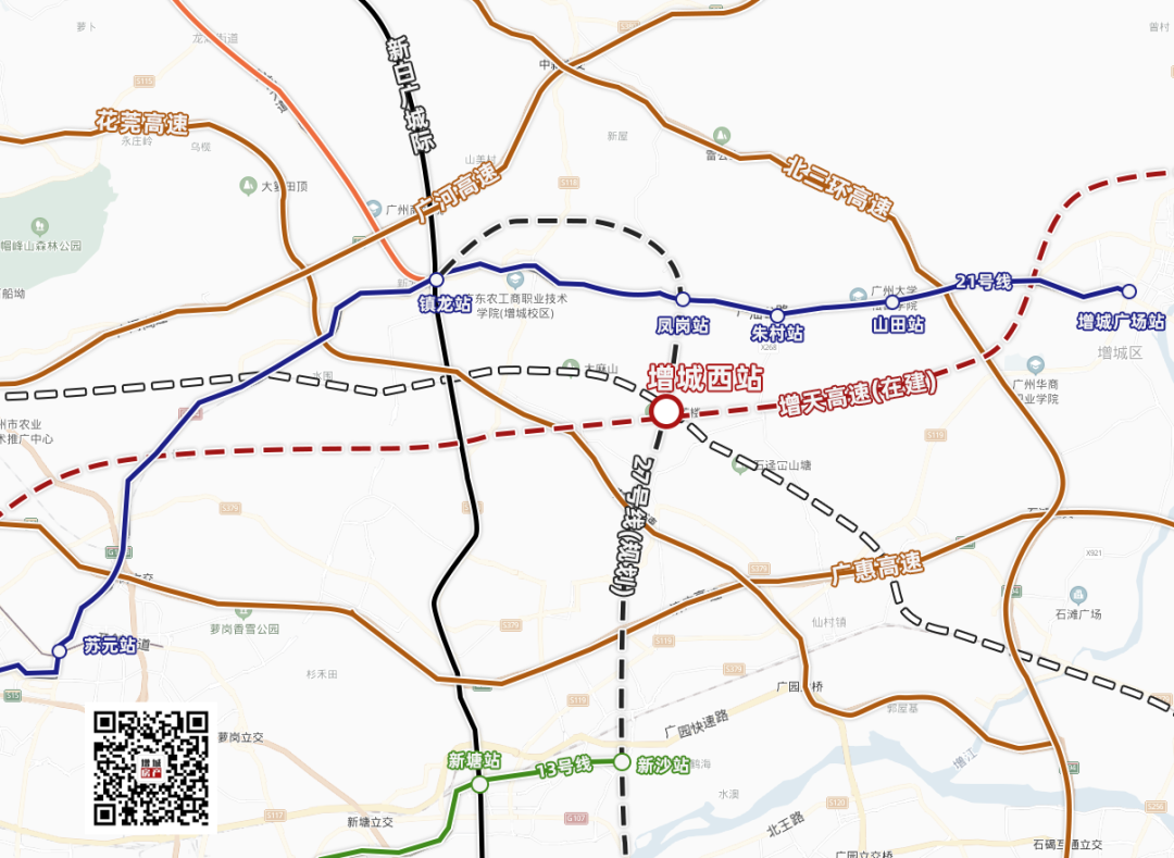 增城西站位于中新镇,占地1800多亩。定位为面向粤港澳大湾区的公铁联运路货枢纽,广州东部物流储运中心,集装箱、快运、特货及综合类业务为主的二级铁路物流基地,同时兼具客运功能。