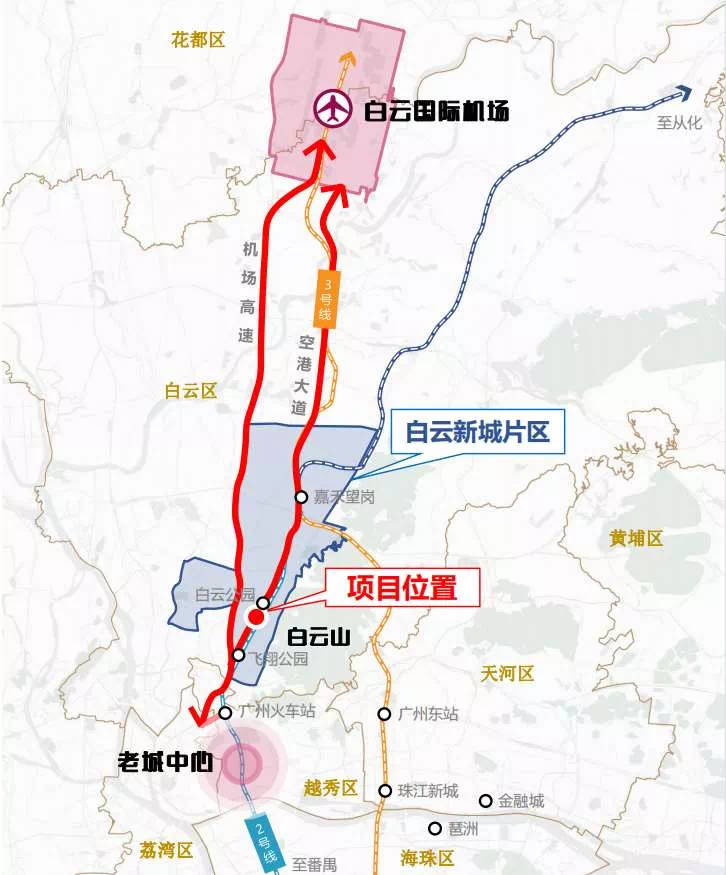 此次项目位于白云新城南部核心区,地处白云山西麓,是整个白云新城的核心地标位置。