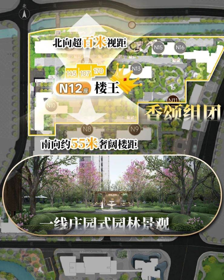 作为全新组团的首发楼栋,N12栋傲踞庄园中轴,是名副其实的楼王。