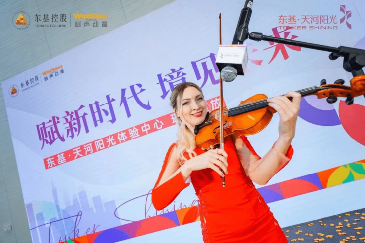 赋新时代,境见未来。体验中心内部弦乐演奏配着芭蕾舞曲,音乐与舞蹈碰撞出火花,点燃企业入驻签约现场。