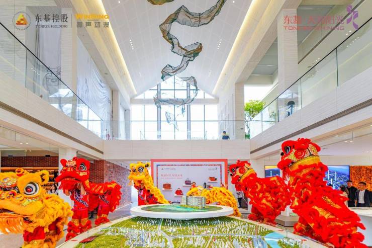 全城热望,星灿天河。随着祥狮起舞,在主持人的邀请下,东基控股关董、蔡董、束总、罗总,咏声动漫古董、黄总、刘总等领导共同登台启动剪彩仪式,在掌声与礼炮声的交织声中,正式宣告东基·天河阳光体验中心璀璨绽放,恭迎全城品鉴。