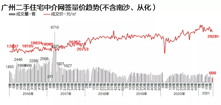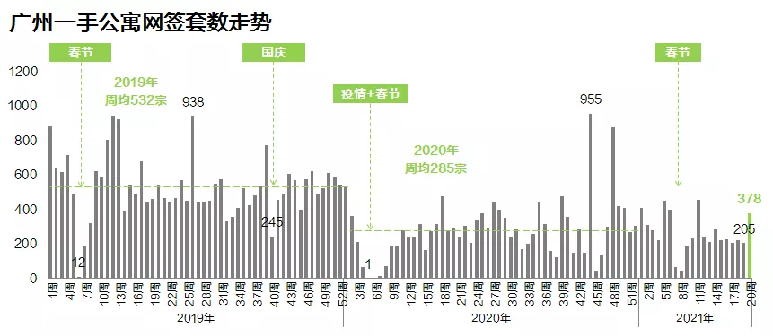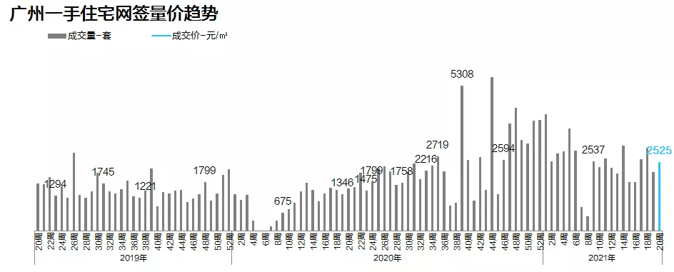 本周全市一手住宅网签2525宗,环比增长16.8%。受4月两轮新政以及五一假期后限价、限签等手段影响,本周以增城为首的中低价位区域、板块、个盘表现强势;由于市场刚性需求依然“旺盛”,不少急于“上车”的买家外溢至房门槛较低,受调控影响较少的片区。另一方面,本周增城绿湖国际城、佳兆业悦峰、大华城东郡等项目均有加推动作,迎合买家需求。就目前市场情况而言,本轮市场调控并未出现2017年“一刀切”导致的市场“急冻”现象,对于希望在广州安居置业的刚需客而言,仍存在相对自由的购置空间。