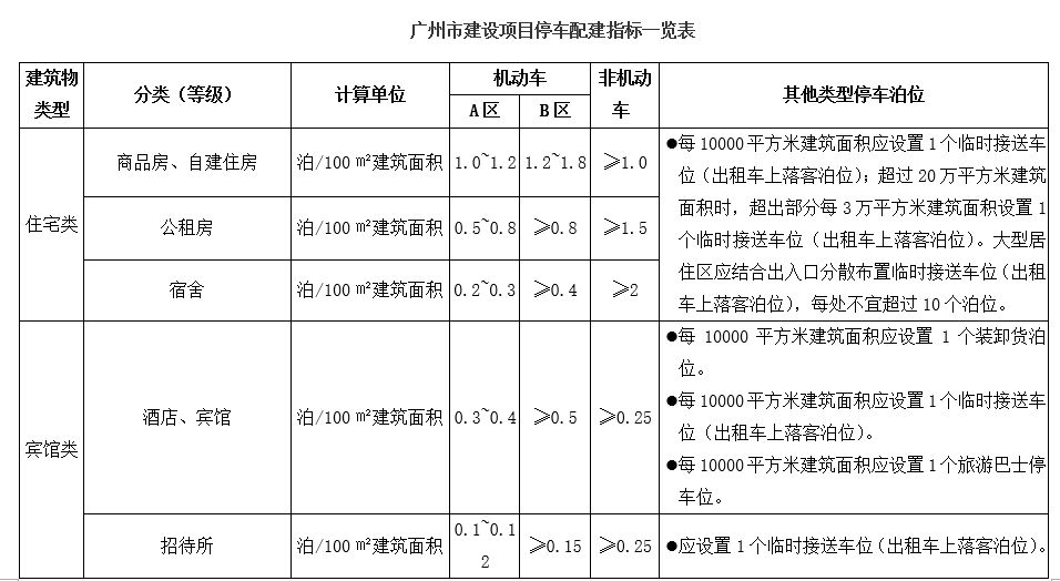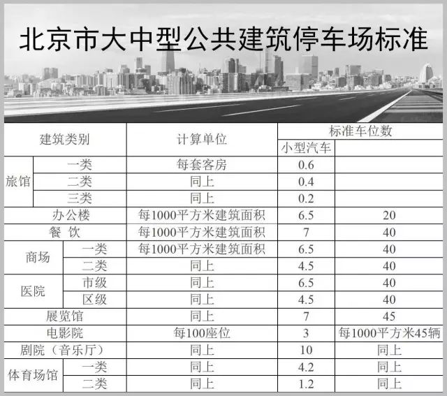 (1) 本表机动车停车位以小型汽车为标准当量表示;