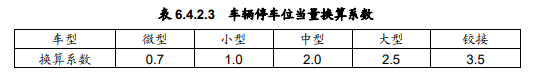 6.4.2.3 配建停车位指标以小型车为标准当量,其它车型的停车位应按表 6.4.2.3 中相应的换算系 数折算。上下客泊位按中型车单车停放面积考虑,装卸货泊位按大型车单车停放面积考 虑,均不进行当量换算。