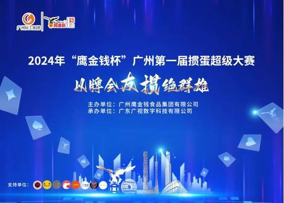 由广州鹰金钱食品集团有限公司携手广东广视数字科技有限公司(广州市广播电视台)共同举办的“2024年鹰金钱杯广州第一届掼蛋超级大赛”,线上组比赛已于7月13日激情开赛,7月14日圆满完赛。