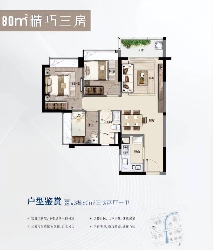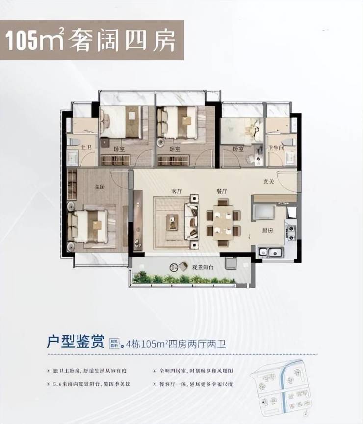 项目目前还在售建面约80-105平三至四房户型,满足不同家庭的置业需求。