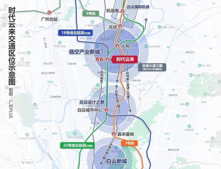 而时代云来与方石站近在咫尺的距离,无疑能直接享受湾区地铁的便捷与利好。从方石站出发,1 站可达白云城市中心,5站直达珠江新城(18/22号线北延段在建中),一线联动穗莞深。