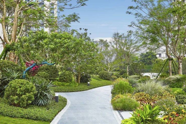 考虑到不同植物的大小、花季,设计师精心挑选世界各地的名贵树种,如朴树、铁东青、凤凰木、 海桐、米兰等。让园林景观错落有致,且不同季节有不同的景色变换。