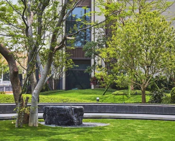 众所周知,园木在移植初期,会有一段尴尬的成长期。但项目为给业主呈现较佳观赏效果,每一株 林木都由设计师亲临现场,选择较佳种植点和较好观赏面。