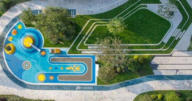 像是在儿童乐园中融入自然探索空间,让大自然成为孩子的第二课堂。同时也加入了给成人使用的 健身器材,让家长在陪护的同时,成为孩子的“大玩伴”。