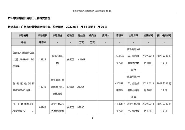 当周,广州一手住宅市场活跃度稍有提升,三个全新项目有所动作。同时,广州第四批次集中供地名单公布,6宗地合计占地面积69.3万平方米,总起拍价为245亿元。