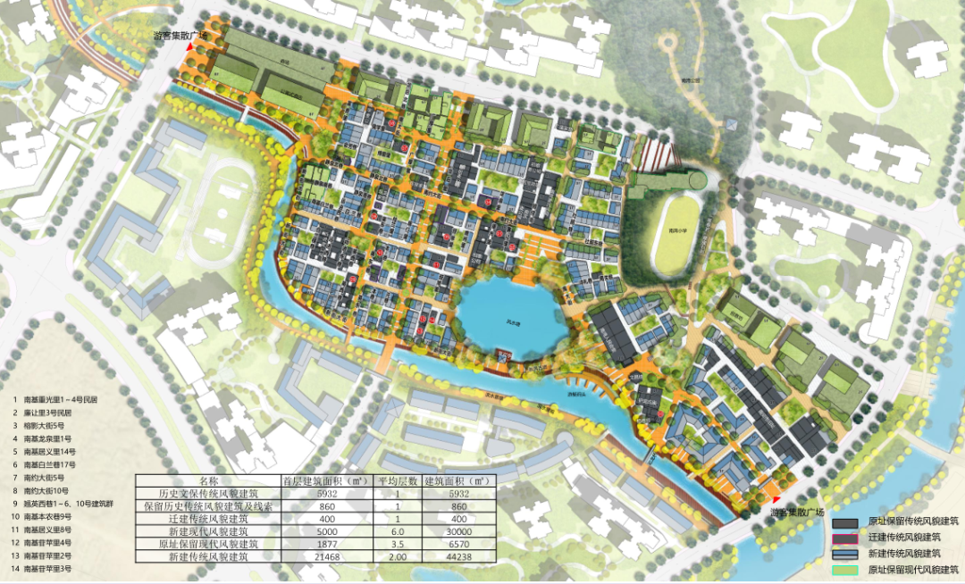 作为南湾旧改的重头戏,南湾文旅小镇项目采用保护与活化利用相结合的规划方案,严格保护文物建筑与历史建筑,传统风貌建筑、保留整治类民居建筑采用修旧如旧、建新如故的更新方案,拆除破坏传统风貌的建筑物,按照规划新建传统风貌建筑。