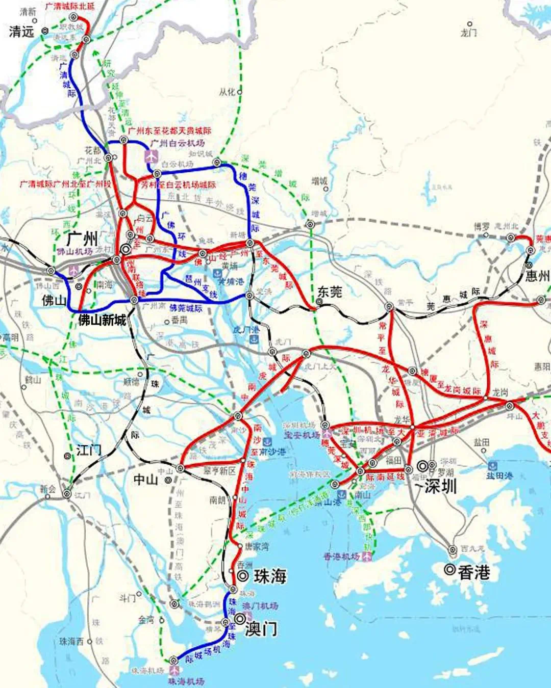 2020年1月广州市规资局公布的粤港澳大湾区航空航运铁路图(部分截图)