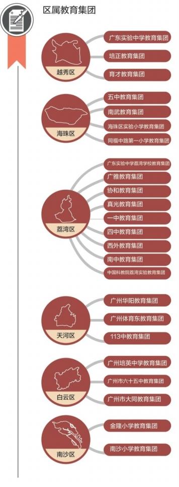 二是以中学为主的教育集团。如广雅教育集团、广州二中教育集团、广州六中教育集团等。