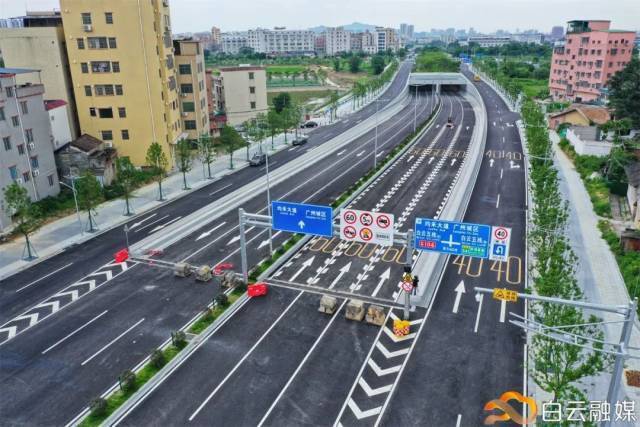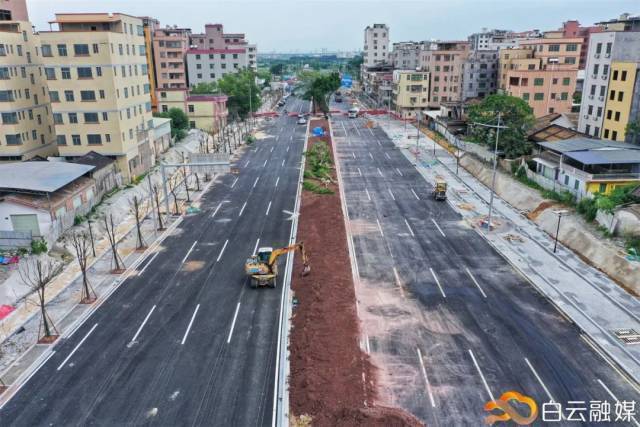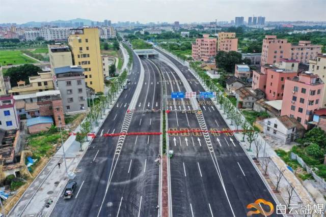 目前,白云五线至江人三路、花莞高速至迎宾大道段约7.2千米已完成沥青摊铺,各类标识标线已划好,正在进行沿线绿化收尾和人行道铺装工作,预计白云五线至江人三路即将开通使用。