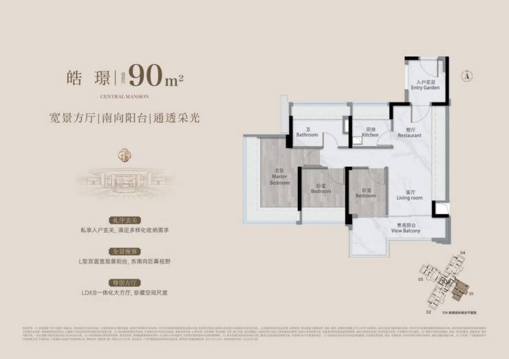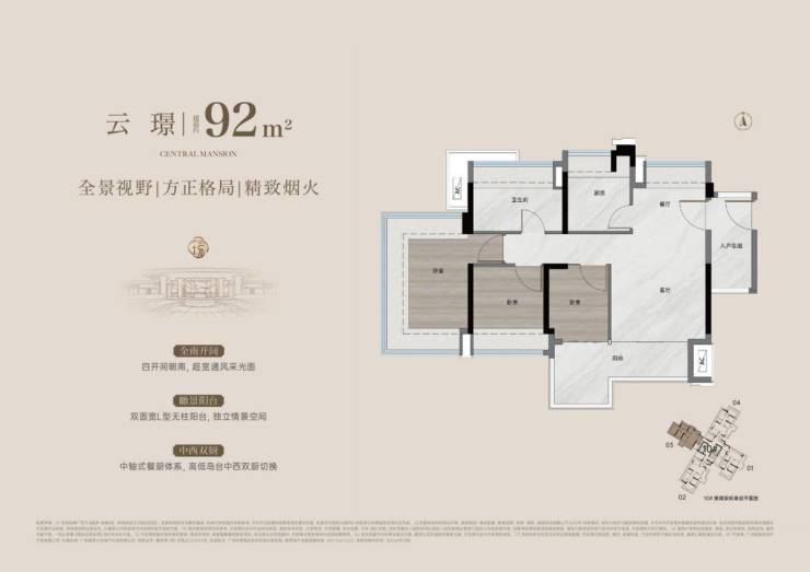 L型双面宽阳台+东南向视野:双面宽阳台延伸观景面,东南向俯瞰城市与园景,采光与视野双重拉满;