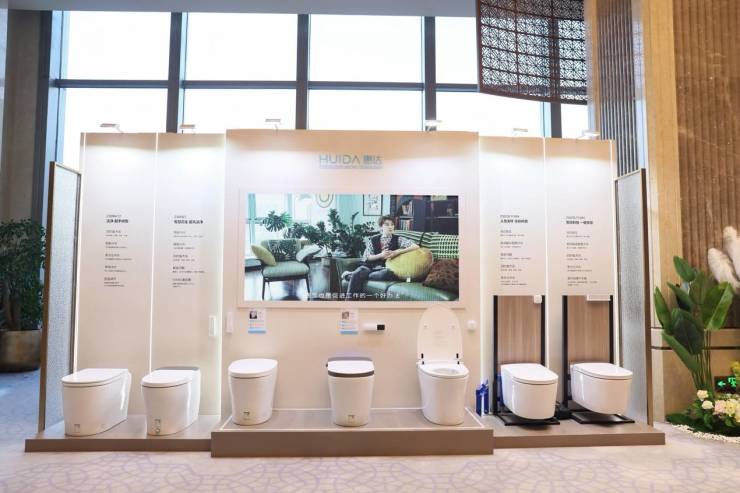 全场最瞩目的当属一系列智能马桶新品,具备三重柔光、三重脚触和众多杀菌健康功能的HZZ5028LT-Pro智能马桶,尽显智能旗舰风范。浮光系列、格兰系列、德琳系列等多种风格的高颜值、强收纳新品浴室柜,还有令人惊叹的1600mm可定制超大陶瓷盆配套高端浴室柜,可更好的满足消费者多样化需求。拥有超大置物平台和实时数显、氛围灯光的HWB0802-H02等高端花洒等,超高品质搭配人性化功能,更符合时下年轻消费者喜好。一众新品的闪亮登场,将为广大经销商朋友们在2025的市场征战中备下充足的弹药。