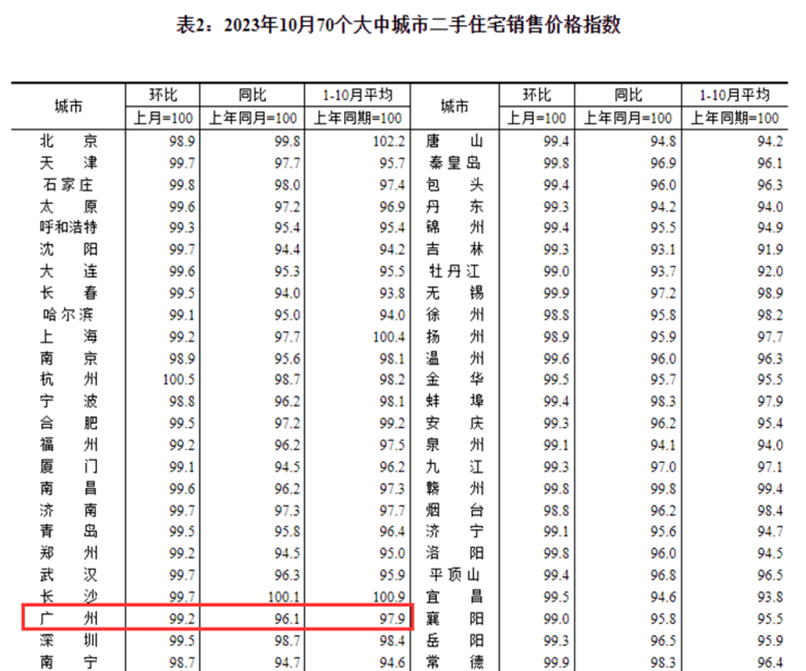 近日,国家统计局发布全国70城房价数据,广州的一二手房价再次下降,其中二手环比下跌0.8%,跌幅扩大0.1%,跌幅为四个一线城市之最。