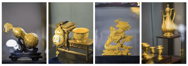 古人云“锤音千万响,花丝分毫嵌”,花丝又称细金工艺,自发源以来一直用于皇族的饰品中。周大福专注工匠精神,让传承与创新静默相逢,此次展品中《福禄双全》作品,采用黄金花丝工艺精制而成,葫芦用手工制胎錾刻及喷砂技术制作,藤蔓用传统黄金錾刻技术制作,便是对古代传统工艺传承和致敬的最佳写照,雕刻了永恒璀璨的奢华印记。