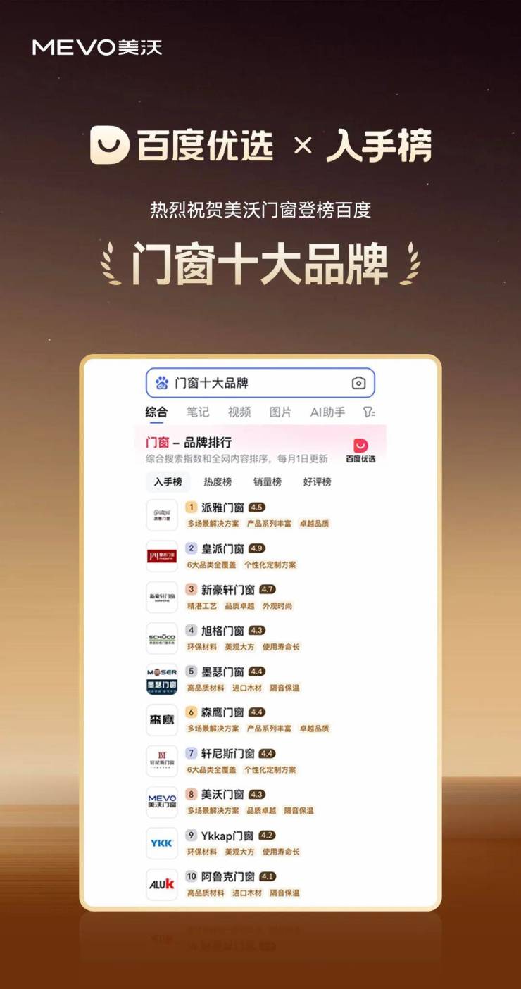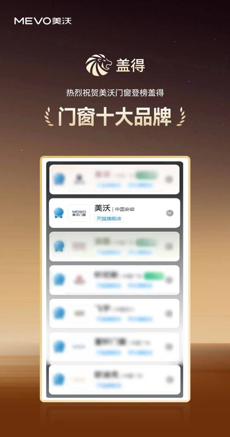 此次入榜是继美沃门窗历年获得天猫&京东「门窗类目十大品牌」,登榜百度优选x入手榜、盖得排行榜、新浪家居、腾讯优居、搜狐家居、中华门窗网等多个权威平台及媒体“门窗十大品牌”榜单后的又一次耀眼亮相。诸多荣耀都是对美沃门窗在行业影响力、产品力、服务力的认可。美沃门窗始终聚焦产品与服务,「窗」建高品质人居空间,引领美好生活新方式。