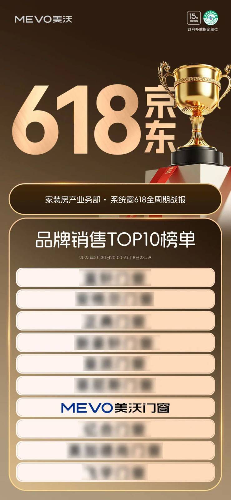 荣耀见证 | 美沃门窗实力登榜京东618系统窗十大品牌