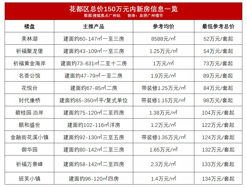当前,花都区新房均价还在“1”字头徘徊,对于预算有限的刚需而言,也是一个可以考虑的区域。据血拼哥不完全统计,花都区总价150万内新房有12个。