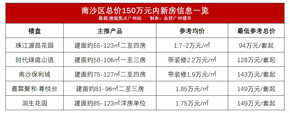 南沙区,得益于大湾区的规划利好,区域发展迅速,如今新房均价已在2万+元/㎡的水平。预算总价150万元内在南沙的选择并不多,刚需买家不妨可以多关注带有小户型的楼盘。
