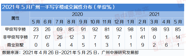 本月甲级写字楼成交占比为85%,主力为两宗内部确权交易以及热点项目的批量成交。