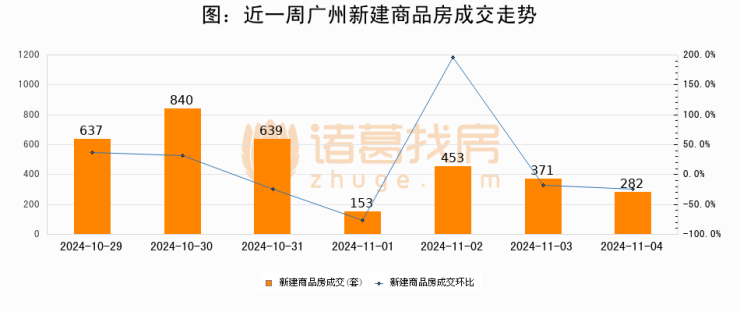 【广州成交日报】11月04日新房成交282套;涨价房源5套