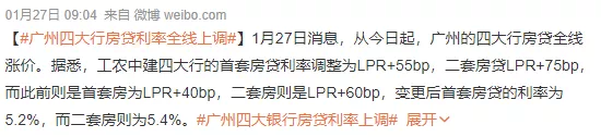 要知道,今年年初,广州工农中建四大行的首套房贷利率仅为5.20%(LPR+55BP),二套房贷为5.40%(LPR+75bp)。