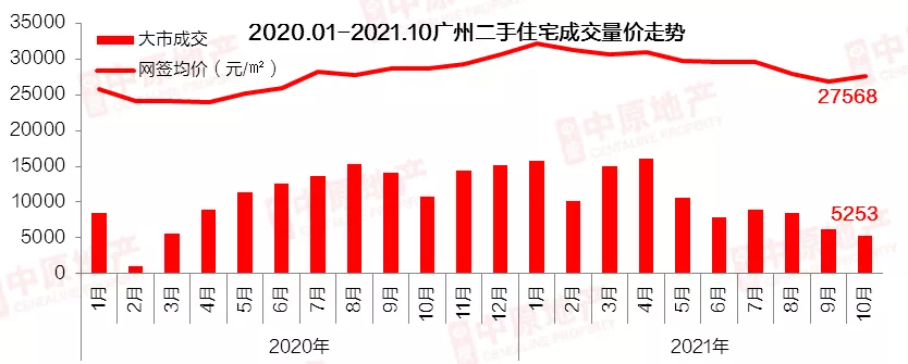 广州中原研究发展部统计数据显示,10月二手住宅成交量(自助网签+中介网签)为5253宗,创下近年来成交较低位。