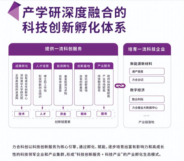 力合科创是国内较早的科技创新服务机构之一,深耕科技创新服务领域二十余年,公司在科技创新服务的过程中形成了“有创新资源,懂前沿科技,会转化成果,可赋能企业,能培育产业”的独特优势,探索出产学研深度融合的创新孵化体系,具有先发优势和资源优势。