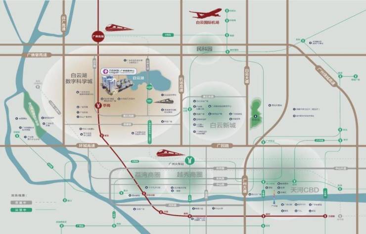 区位 | 广州力合科创中心【企业公馆】位于白云湖数字科技城启动区C位,市内交通通勤便捷,为广州地铁超级换乘线8号线亭岗地铁站上盖,三站地铁抵达亚洲最大广州白云站,25分钟车程到达白云国际机场,此外,该区域汇集许广、广清、华南快线3条高速,方便通达大湾区各个城市。
