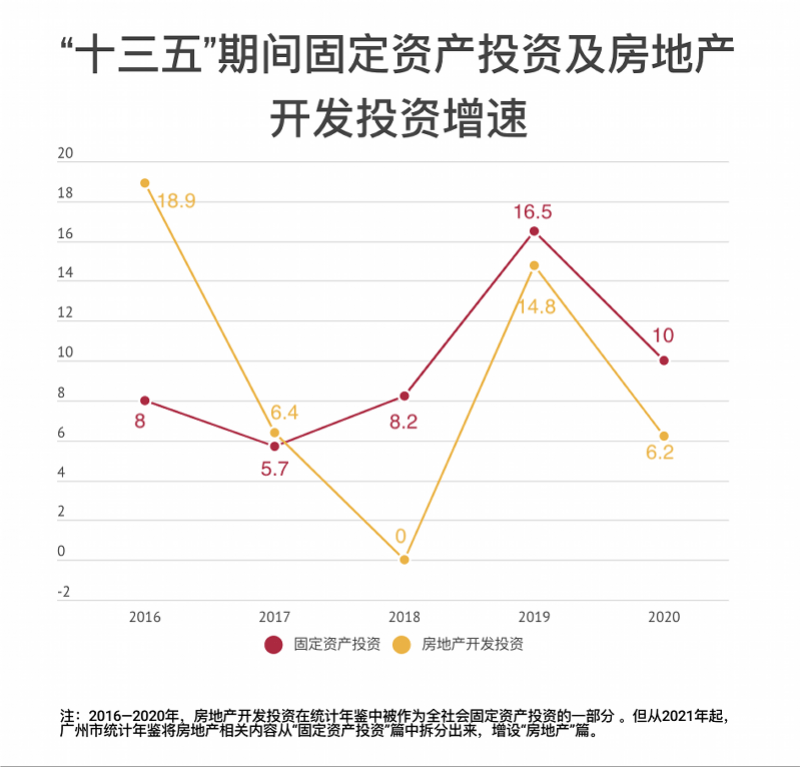 据广州市统计局消息,数据显示“十三五”期间广州市房地产总体保持较快增长,民营资本是广州房地产市场主力。此外,2017年房地产开发投资增速有明显回落,此后三年增速一直低于全社会固定资产投资增速。