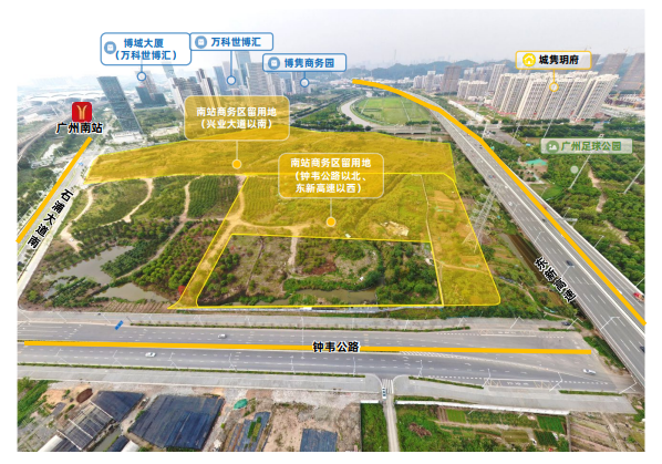 另南站商务区BA0402074地块、BA0402105地块地处地铁2号线、7号线、22号线沿线,距离广州南站约500米,邻近东新高速、南大干线,步行可达广州南站,驾车30分钟可到达万博商务区、广州国际创新城等重要功能片区。周边有万科世博汇等商场,生活配套一应俱全。