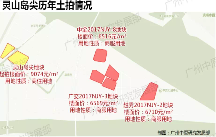其中灵山岛尖地块以楼面价17231/平最终成为新的南沙高价地,远超保利拿下的蕉门岛地块,当时楼面地价为15811元/平!