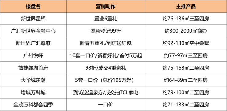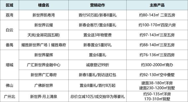 春节期间,新世界集团下的多项目回馈购房者,推出多项优惠活动,具体如下: