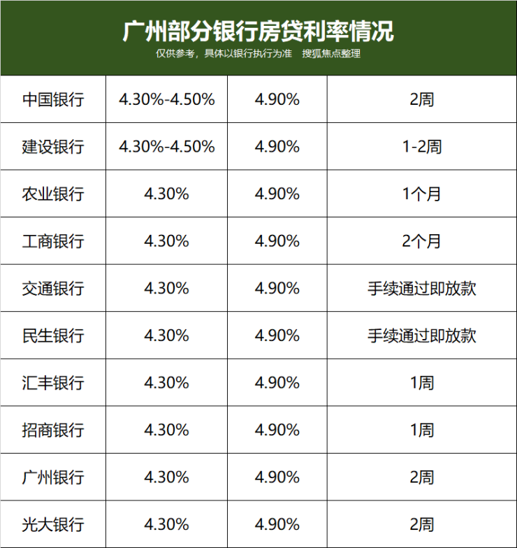 纵观目前广州各大行房贷利率情况,整体以首套4.30%(LPR+0BP),二套4.90%(LPR+60BP)为主流。