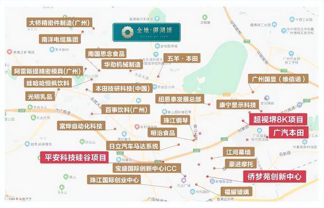 金地·御湖颂择址大湾区地理几何中芯、广州东部新中心腹地——增城,区域内三大千亿产业集群,形成“芯、显、车”三大特色产业格局,打造大湾区发展动力源。