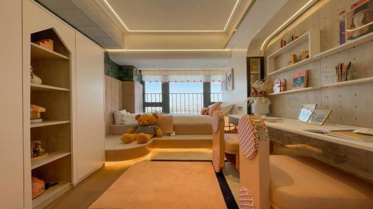 夫妻主卧、孩子房间是基本的需求,但现代家庭教育理念强调从小培养孩子的独立性,这就需要为孩子提供专属的成长空间。此外,居家办公学习区、多功能活动空间以及充足的储物空间都是现代家庭的必备需求。所有条件都要满足的话,至少就需要四房空间。而若还要兼顾老人帮忙带娃,对空间的要求就更为苛刻。然而核心区的高昂房价,让许多家庭在预算与空间之间艰难抉择,往往不得不为了控制总价,而在居住体验上做出妥协。