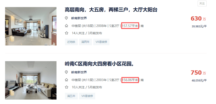 即便与同区域的二手房市场相比,新世界云耀的性价比优势同样明显。目前挂出的五房户型,多为复式结构或150㎡以上的大平层,不仅总价高,而且楼龄老旧,户型设计也难以满足现代家庭需求。