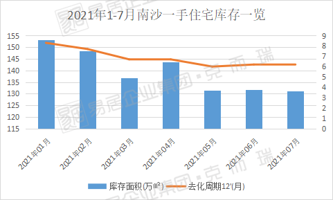 除此之外,自4月份广州连环出台楼市调控后,房地产市场持续收紧,行情随即冷淡,新房供应与成交都双双下滑,截至7月已是三连跌。但相比之下,供应量较成交量更低,所以5、6月去化周期缩至7.9个月。