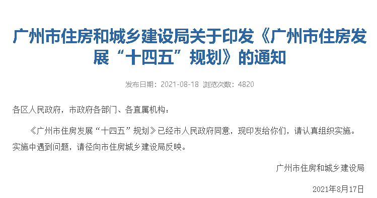 近日,广州住建局官网发布了《广州市住房发展“十四五”规划》的通知。文件雨露均沾,住宅供应、分区调控、控制房价地价多个方面均被提及。