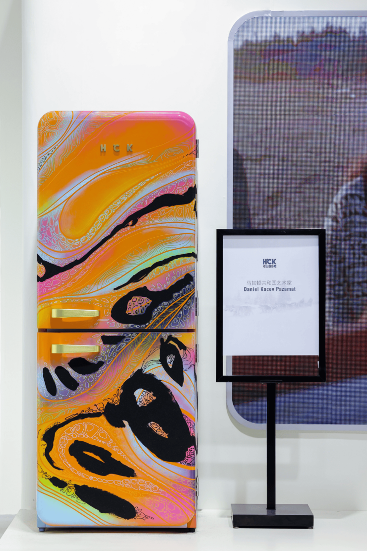 HCK哈士奇冰吧独特的圆弧复古美学设计,宛如流动的艺术符号,吸引了众多像Daniel一样的国际艺术家跨界合作,比如国际知名艺术家、策展人李振华先生、加拿大艺术家Matina Shapiro等先锋创作者,都先后与HCK哈士奇冰吧开启深度艺术共创 —— 当标志性弧面遇上先锋艺术脑洞,冰吧瞬间化身为可触摸的跨界画布,在功能与美学的破壁对话中,持续刷新「家电即艺术品」的潮奢定义。