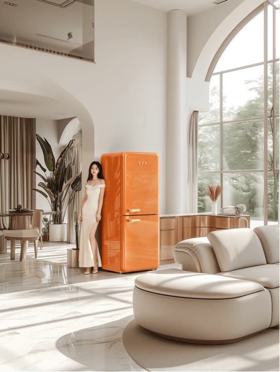 HCK哈士奇Max双门复古冰箱以橘猫橙为视觉焦点,不仅是灵动鲜活的色彩表达,更是高端品质的象征 —— 其采用与法拉利超级跑车同款的烤漆工艺,将HCK家族标志性的80° 0缝隙无拼接的弧线美学淋漓展现。这种超跑级烤漆工艺,兼具环保耐磨特性,令色泽饱满透亮,即便长时间使用,依旧光亮如新,以轻奢质感彰显不凡格调。同时线条流转间勾勒出人生蜿蜒起伏的轨迹,寓意着独特生命线条交织碰撞的奇妙反应,HCK哈士奇冰吧无缝一体成型的圆弧机身也让艺术线条的表达更流畅、更融合。