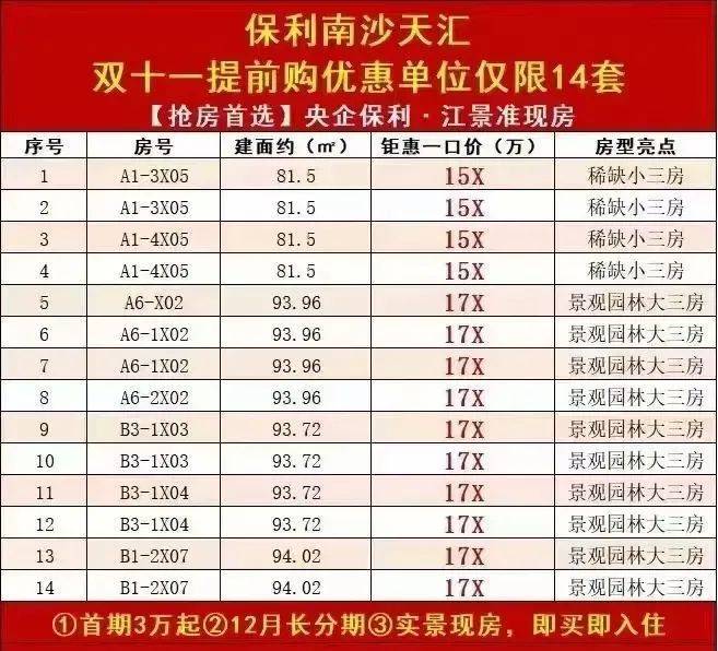 保利罗兰国际,双十一推出108平3+1房专场,总价42X万起。