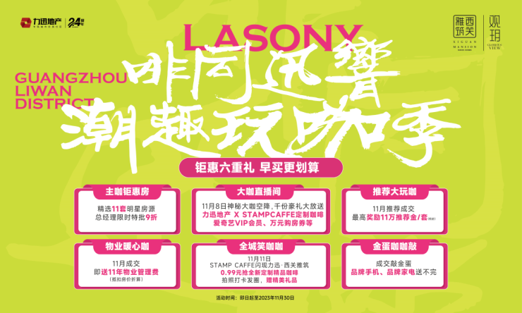 陈家祠双地铁热销盘,力迅西关雅筑推出11套限时特批9折房源、11月成交即送11年物业管理费等,还有多重好礼,力度拉满!