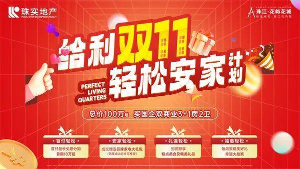 珠实·嘉悦湾 双十一狂欢购、百万礼包补贴送不停。11套超笋一口价、前11套成交送全屋家装等,活动持续到11月19日。